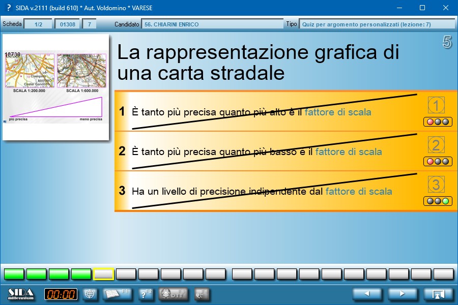 Il quiz faceva parte della lezione n. 7 (Carte stradali e uso economico del veicolo) del corso KB.