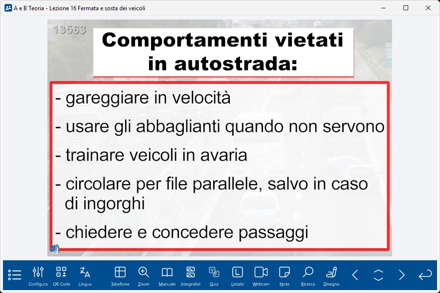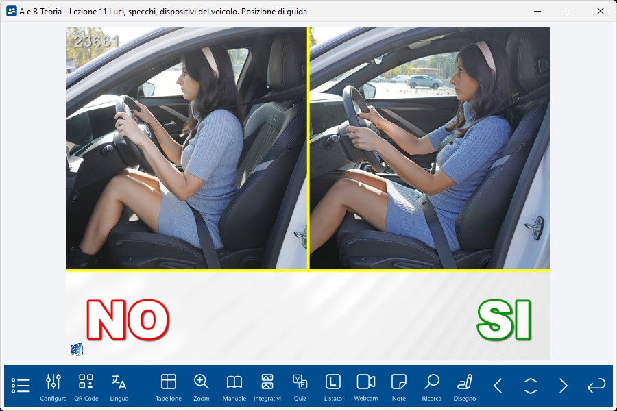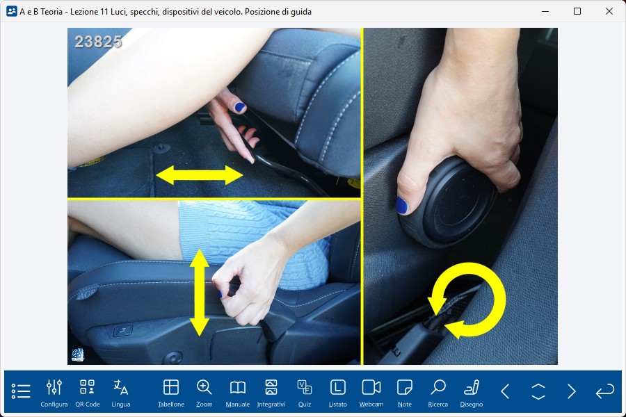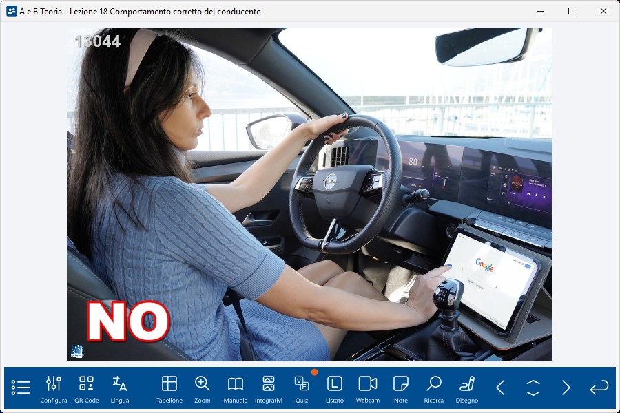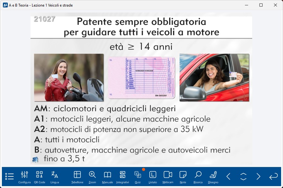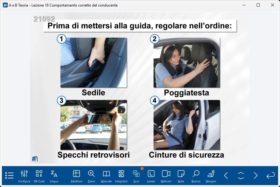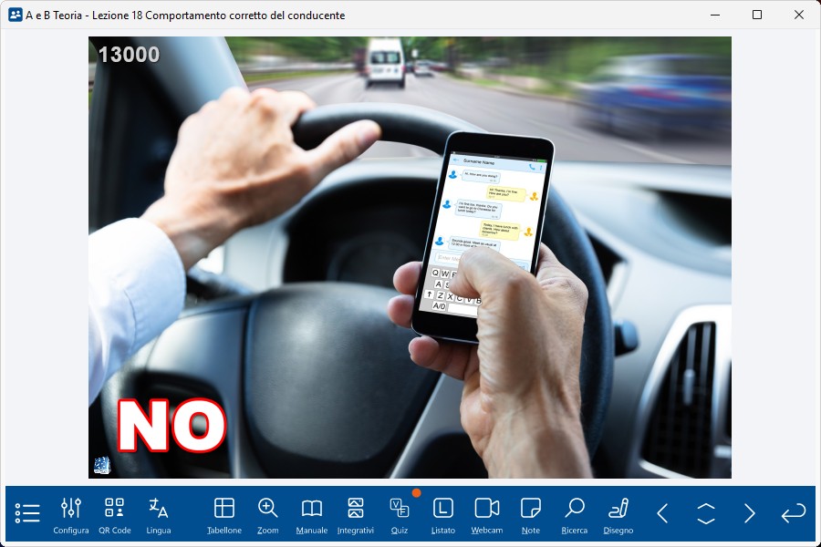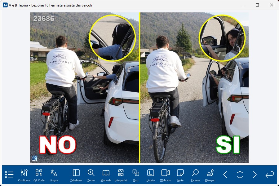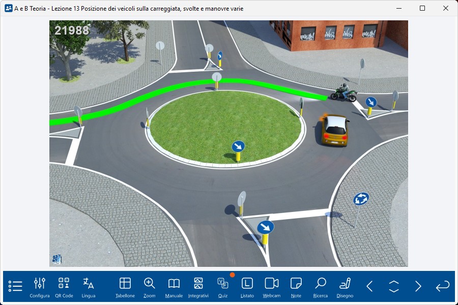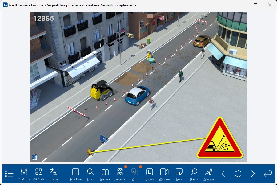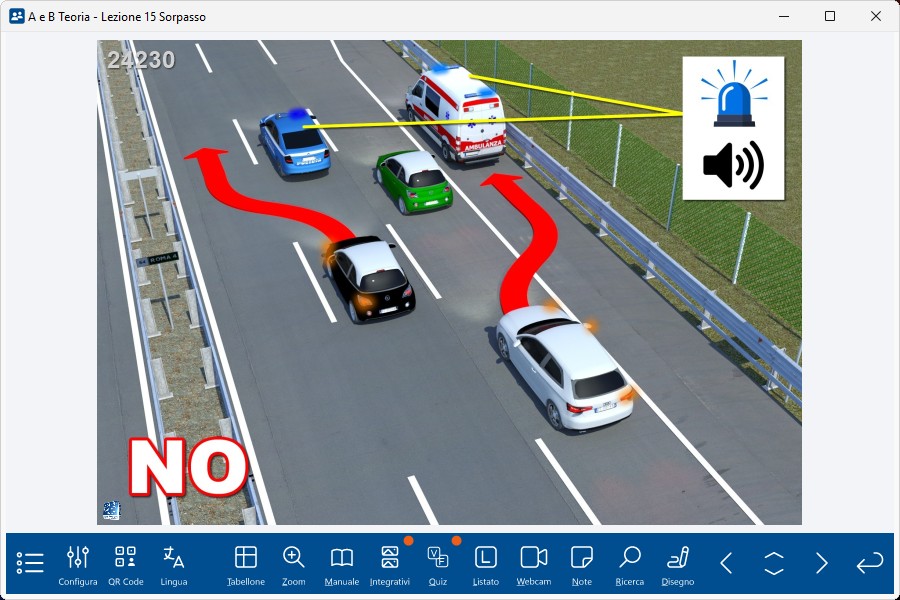 Abbiamo realizzato nuove immagini e migliorato alcune immagini già presenti, grazie anche a segnalazioni di alcuni clienti. Inoltre, abbiamo aggiunto alcune immagini che riguardano situazioni stradali non richieste dai quiz, ma eventualmente utili per un approfondimento.